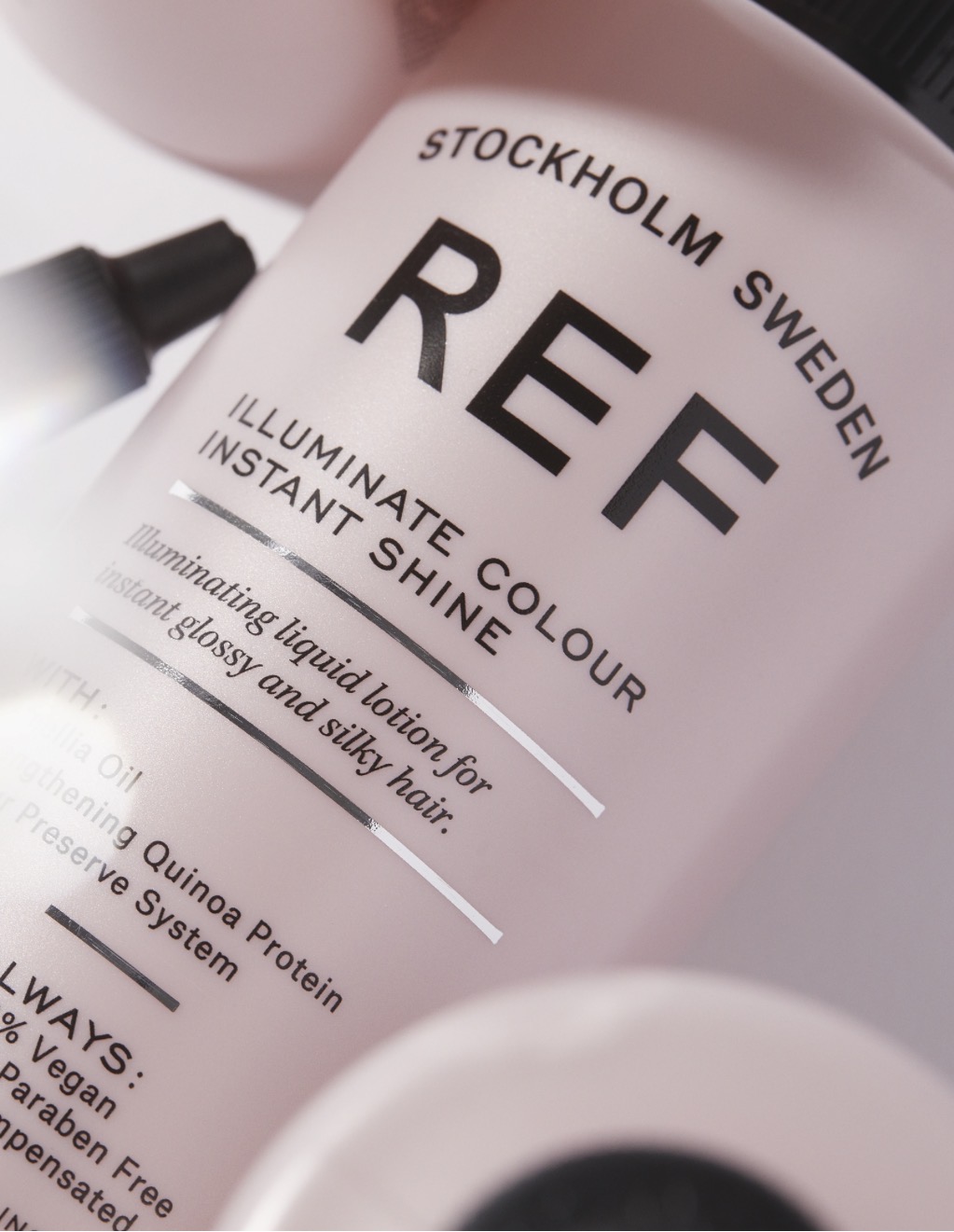 Met REF Stockholm kies ik voor Scandinavische kwaliteit: vegan, duurzaam en professioneel. REF gebruikt vegan en cruelty-free formules met o.a. quinoa-proteïne om haar van binnenuit te versterken, kleur te beschermen en hydratatie te geven.